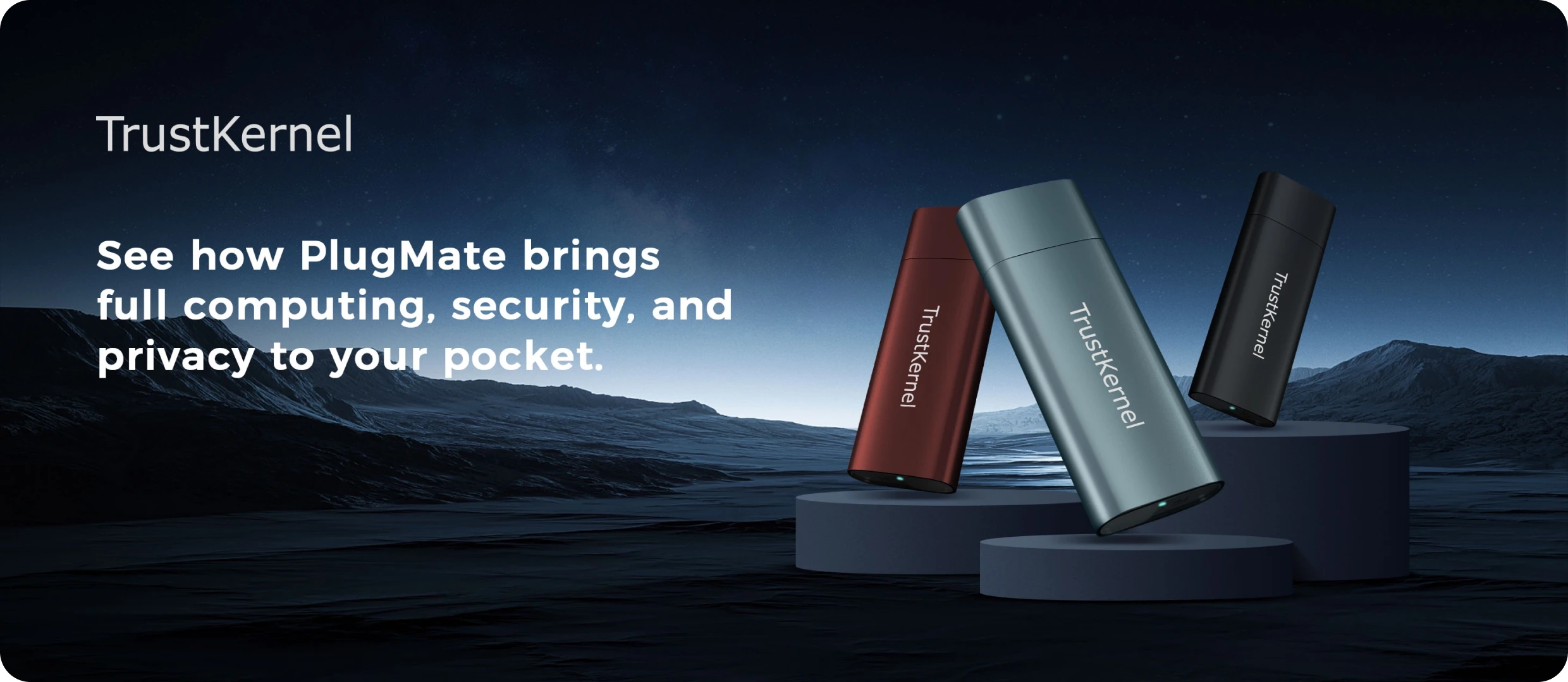 • Independent operation: PlugOS runs independently inside the device, doesn't occupy the host device's storage and computing resources, and data is completely encrypted and processed inside the PlugOS device. Unplug it, and PlugOS "disappears", leaving no trace on the host.